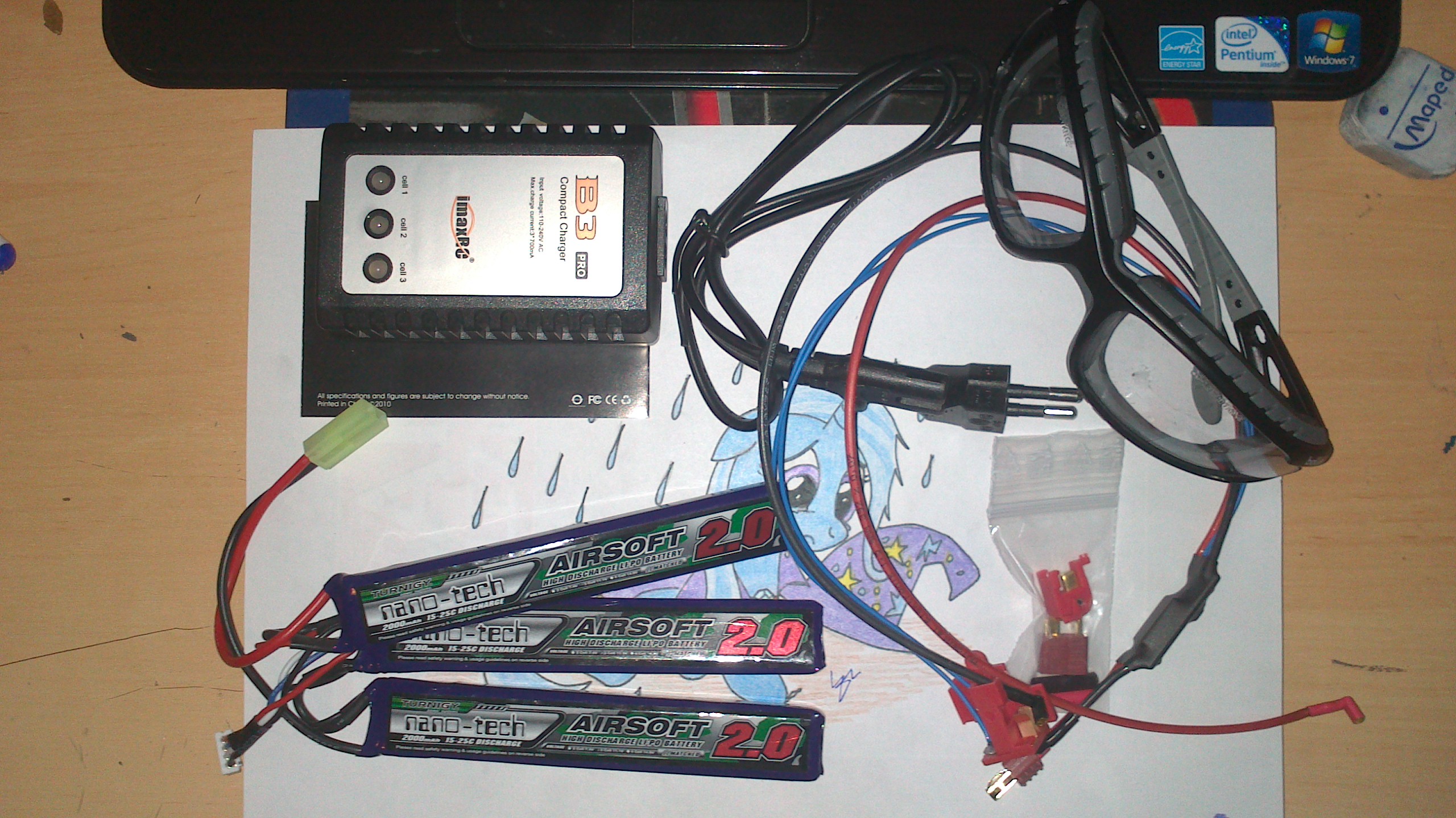 Konečně mi přišlo to co jsem tak dlouho očekával. Jefftron kabeláž s mosfetem. Brýle Bolle Lipol baterie Turningy NanoTech 11.1 V, 2000 mAh Nabíječka Lipolek. Já to zkusím teda nahodit, tak doufám že se mi to povede  Příloha:
