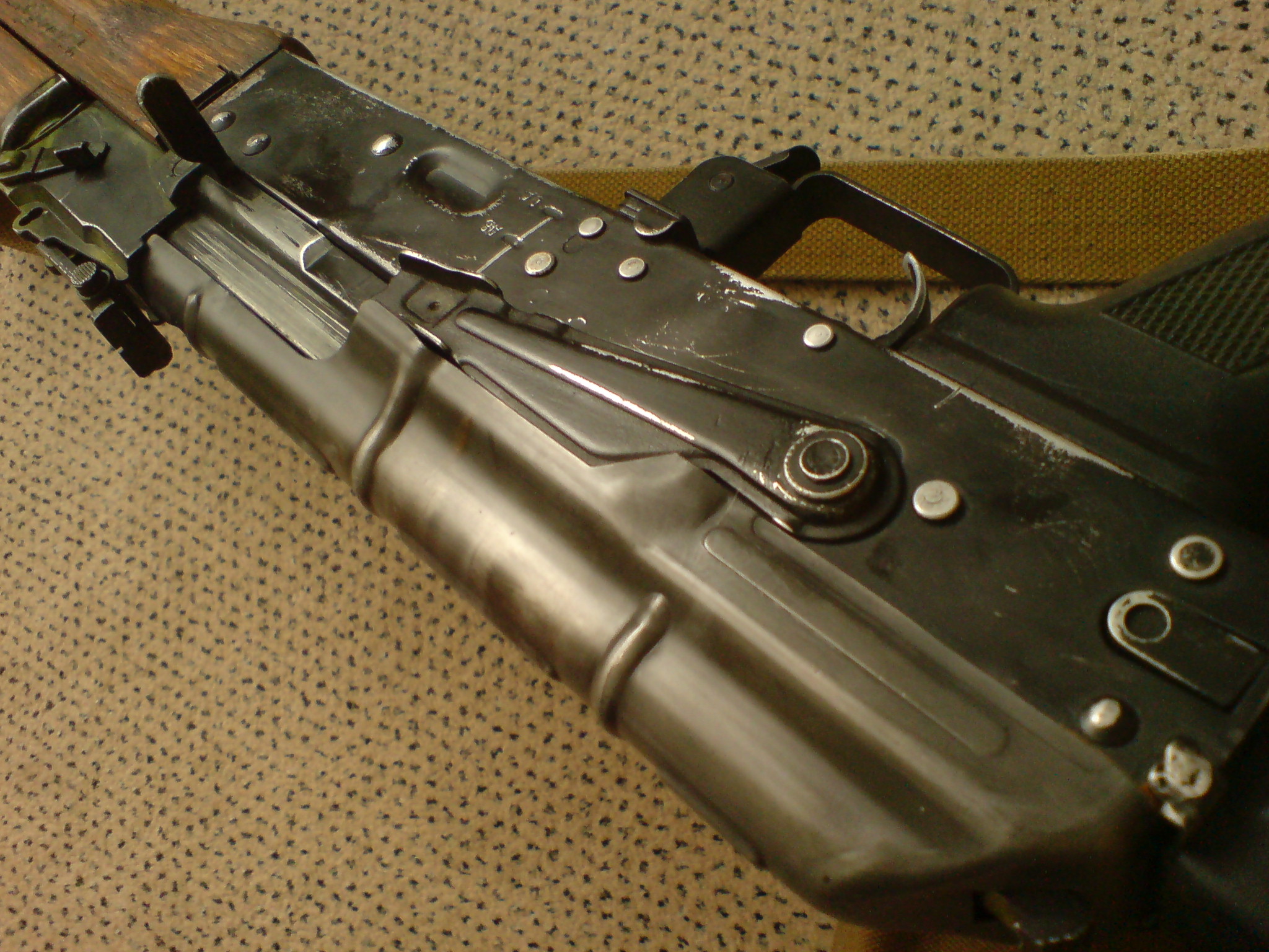 ono to asi jen tak vypadá,ale ve skutečnosti je to hodně matný.Vlastně to teď může být trochu lesklý,je to nakonzervovaný olejem.tohle bylo pro pokus.Chci pořídit ak74 od classic army,nebo časem gbb od WE,protože je celoželezný.nikde žádná slitina magnesia a nevím čeho a na něm provést kompletní brynýrování jak u ostrýho. jinak si hodně zakládám na patině u sovětských zbraní,tak proto tam je nějaká ta barva atd...