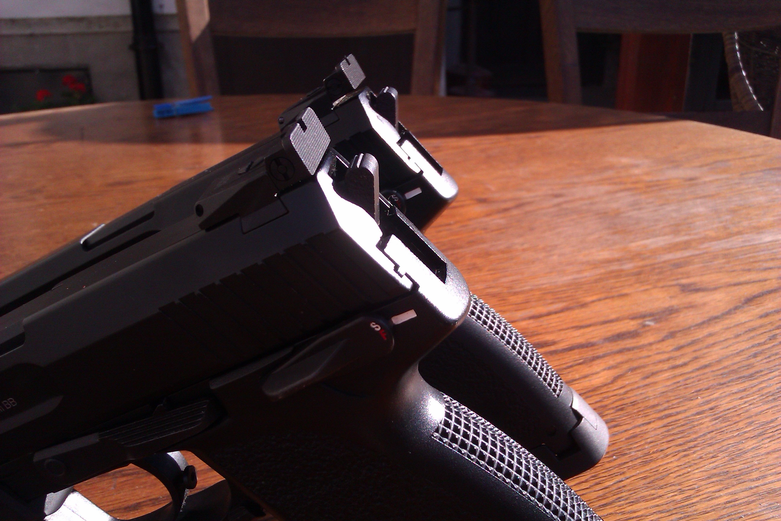 Děkuji za fotky i zkušenosti s vašimi zbraněmi, je vidět že to mají všechny USP stejně, tedy zadní mířidlo musí být o dost výš než přední, hlaveň prostě směřuje lehce dolů. Zkusím vyměnit šroub a dát silnější pružinu, aby se mířidlo nehýbalo. Jinak hlaveň poškrábanou nemám, trubička byla velmi jemně broušená a navíc duralová, ta ocelovou hlaveň poškrábat nemůže Je to trochu škoda, u nové verze bych takovou chybu v návrhu nečekal, ale evidentně to nemá moc vliv na funkci. Uvídím časem jestli s tím budu dělat ještě něco jiného než úpravu mířidel. Ještě že jsem vzal tactical verzi, ty štelovatelné mířidla jsou super věc