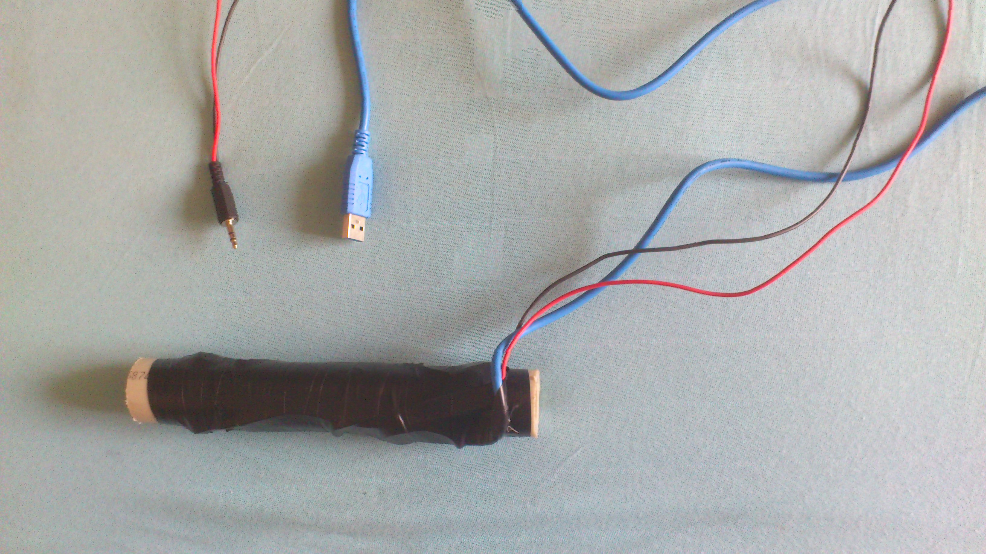 Kabel od jacku dolů (dle schematu), kabel připojen na delší fous tranzistoru, poté kabel od stejného tranzistoru od menšího fousu na druhý tranz. připojit na větší fous. poté z malého fousu vést opět na jack 3,5