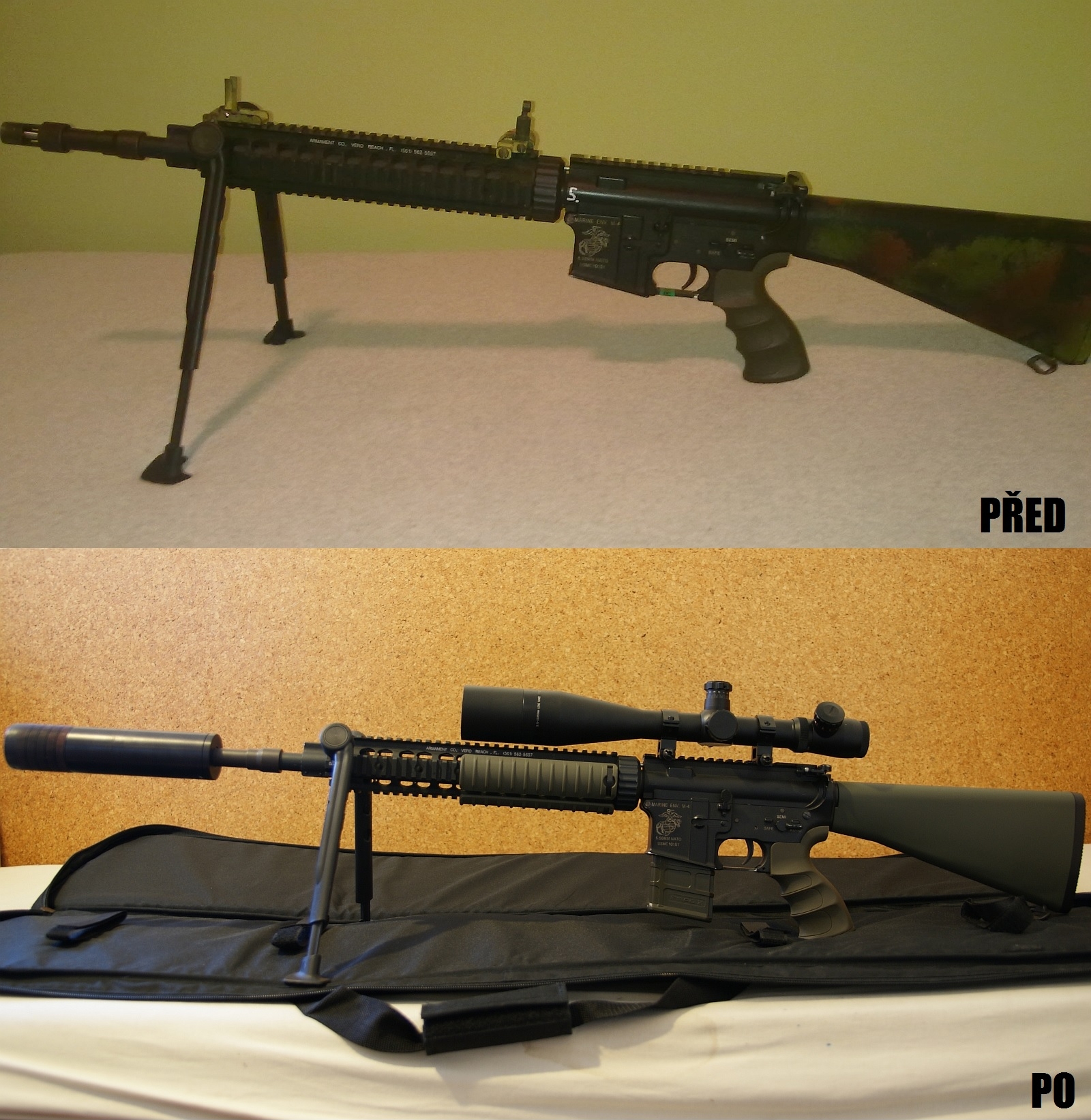 javak810i píše: Další mazlik se mi dostal do rukou, tentokrát M4 SPR od GP. Na fotce nahoře je stav, ve kterém jsem ho koupil. Vizuální upgrade je prakticky hotov, dobrého po málu  . ty nožičky bych nahradil nějakými od Harrise.