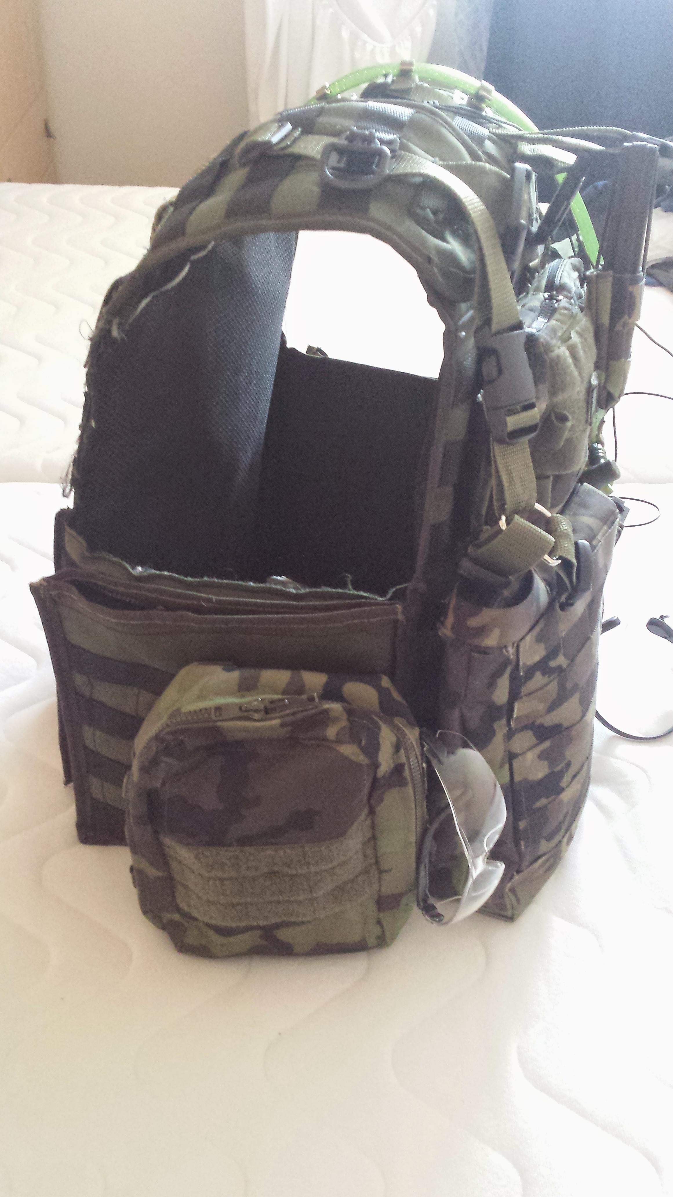 Tak jsme se na to vrhli a vesta je z 99% hotová... Celá vesta včetně všech sumek je dělaná na míru. Práce mraky, nervy v kýblu, ale nosí se luxusně a 100% vyhovuje.