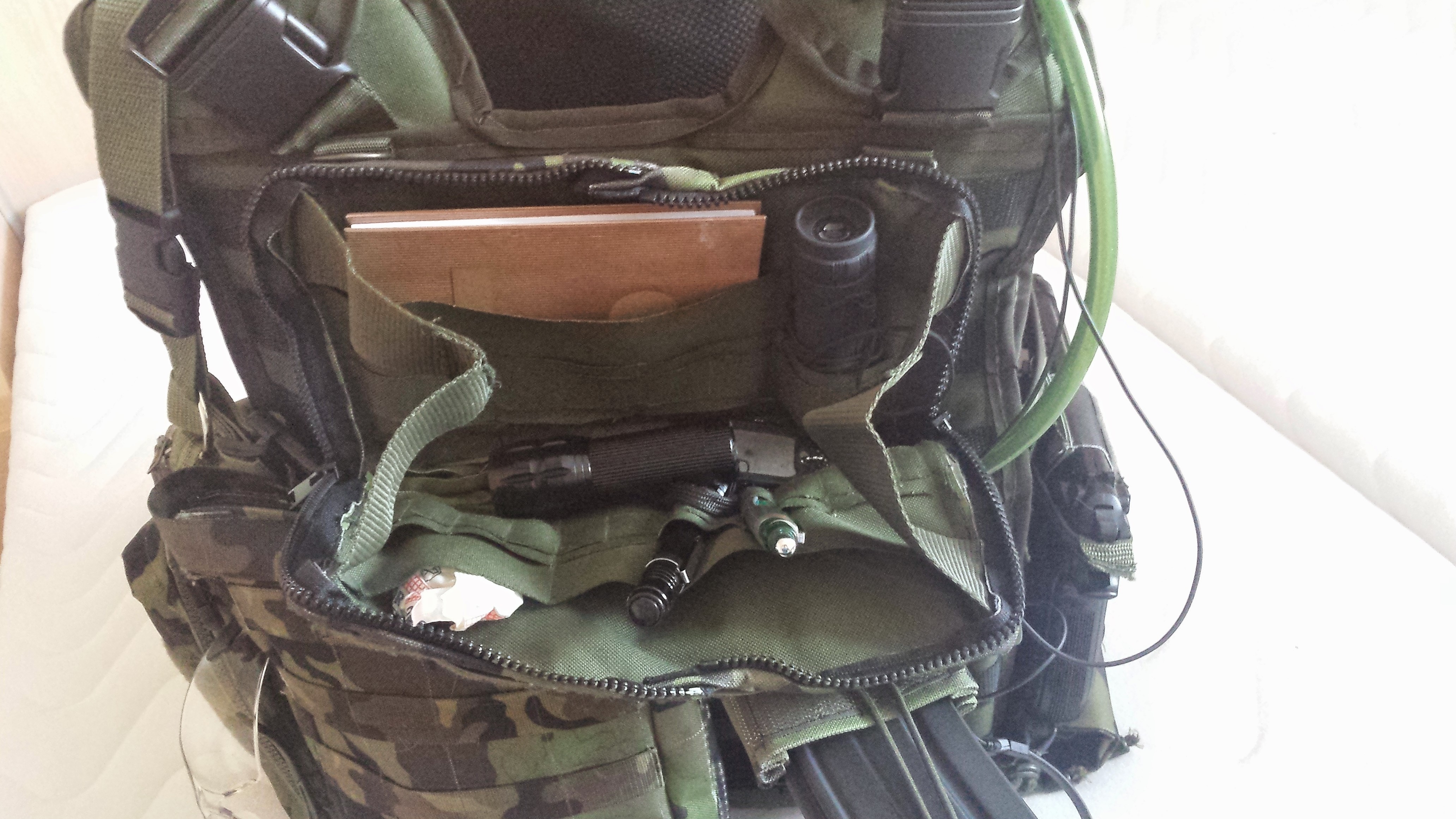 Tak jsme se na to vrhli a vesta je z 99% hotová... Celá vesta včetně všech sumek je dělaná na míru. Práce mraky, nervy v kýblu, ale nosí se luxusně a 100% vyhovuje.