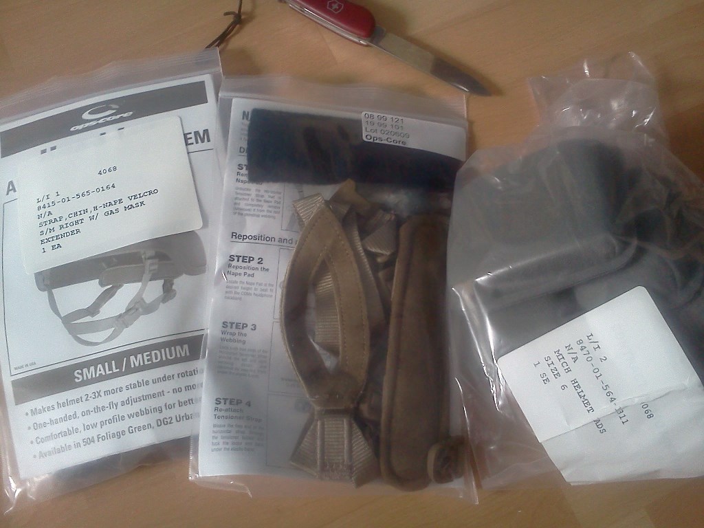takže zas něco dalšího, tentokrát ne k Africe, ale k moderně. Přilba je kopie Crye Precision Air Frame, kterou vyrábí TMC. Jelikož jsem na netu koukal po recenzích, už dopředu jsem věděl, že celej vnitřek je naprd. Naštěstí se podařilo sehnat, takže jsem dokoupil origo Ops Core H nape pad a Ops Core polštářky. Taky jsem k helmě vzal rovnou VAS montáž na NVG a kapsu na baterky dozadu.