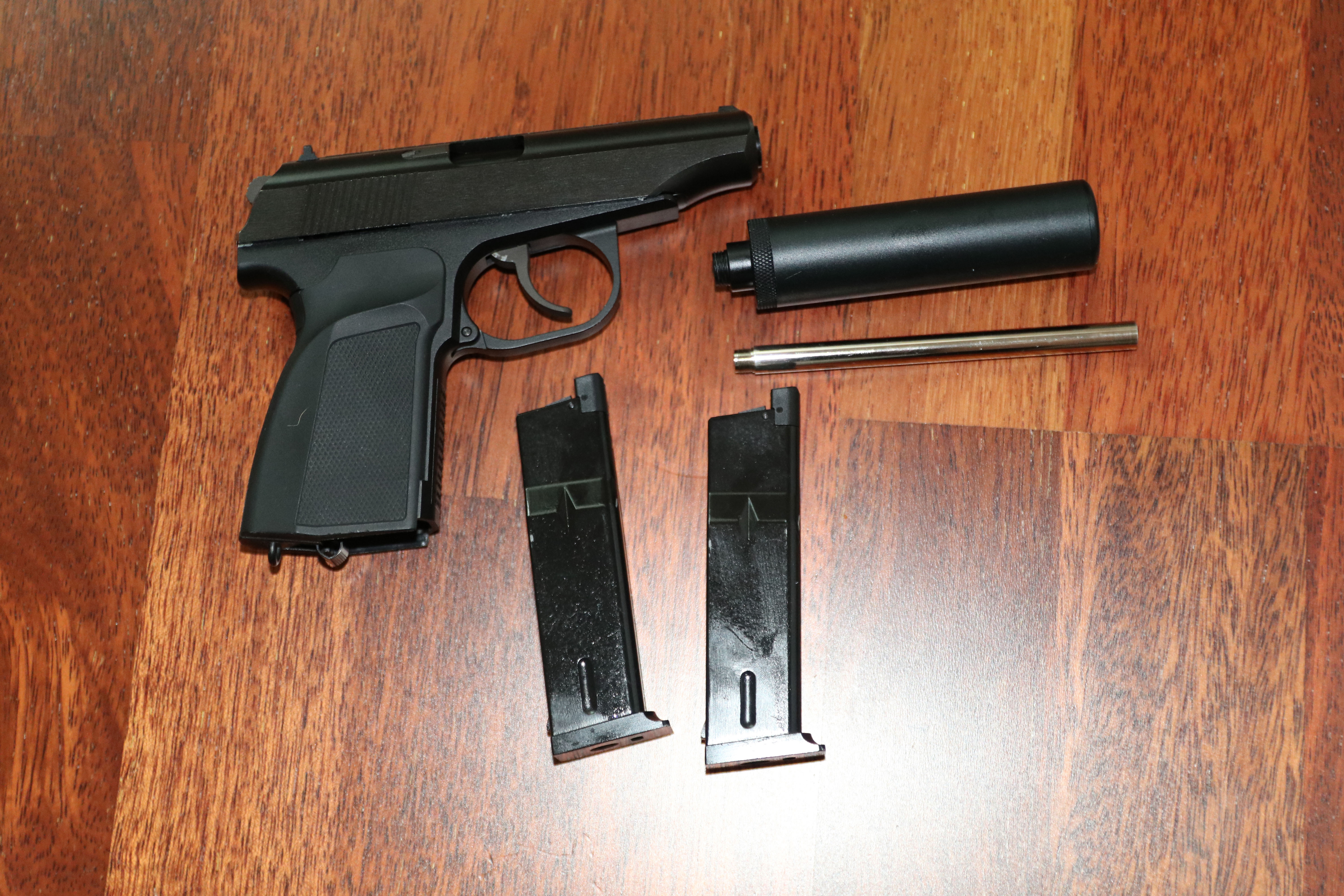 prodám plynovou pistoli Makarov s blowbackem od firmy WE. Jedná se o verzi s našroubovatelným tlumičem s prodlouženou hlavní. K pistoli jsou dva zásobníky, z čehož byl jeden přikoupen.