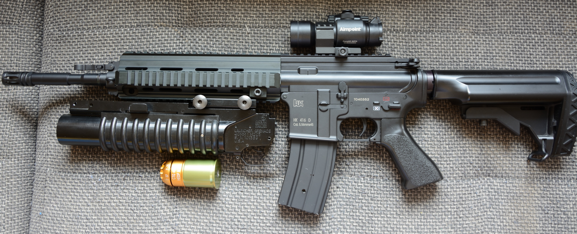 Poslední věci na prodej: HK 416 D (od JG) s granátometem M203, plynovým granátem HEDP M433 a kolimátorem Aimpoint - cena 2200 Kč. Příloha: