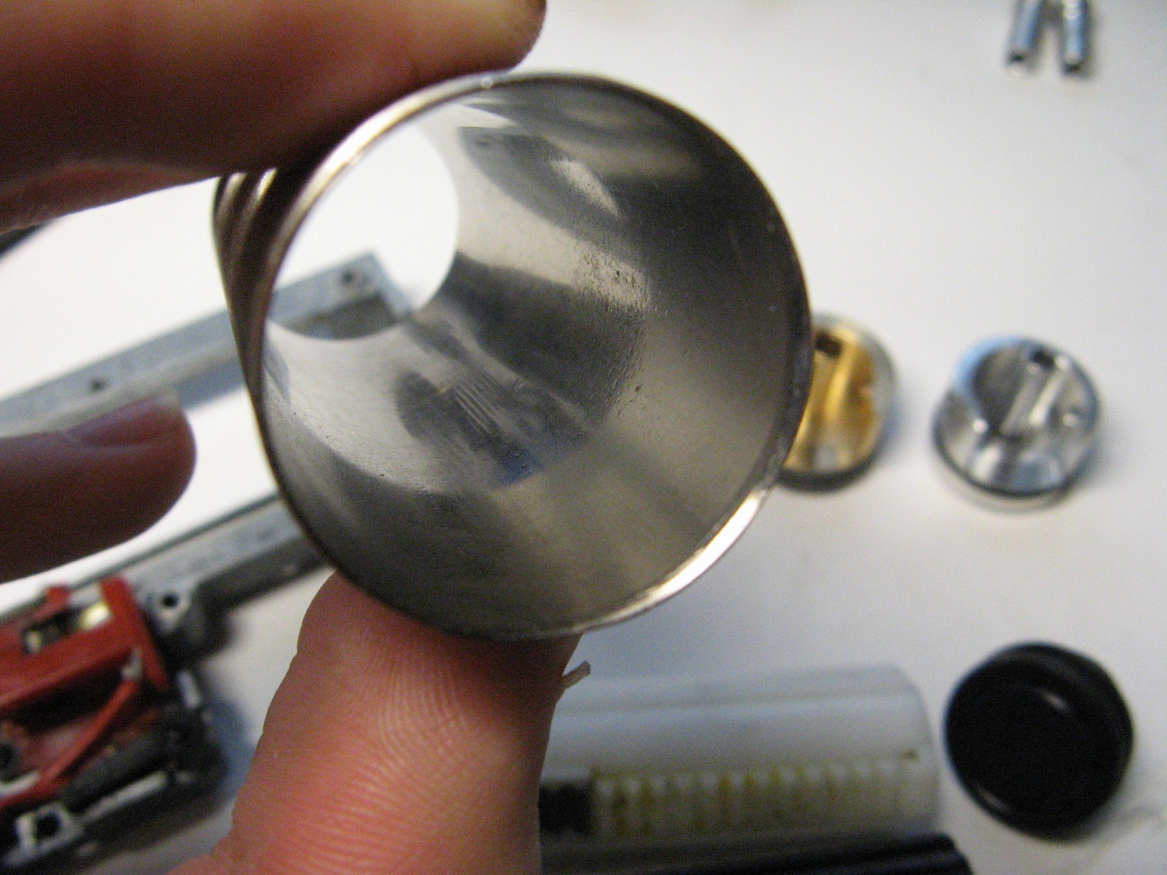 jen dodám že jsem kupoval asi tak 5 guru trysek a všechny byly takhle znečištěné a všechny jedou vpohodě, je to jen povrchová záležitost. a pak ještě dodám že tak každá druhá obědnávka byla špatně ( jen 5 ) ale vždy obratem vyřešena  pak ten píst vůbec nevadí že má upilované ty 2 zuby a ten výron na hlavě válce nwvypadá nebezpečně, válec nevím