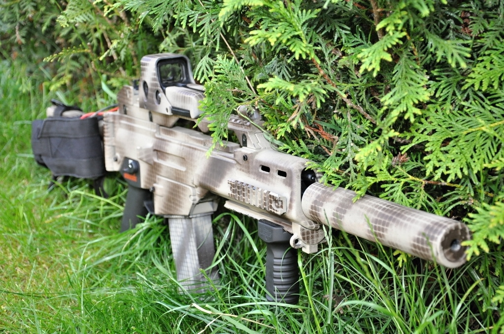 - zbraň je přestříkaná by DALI (krylon) - dodatečně přidány RIS na předpažbí - 4x ACOG (made in china) - vnitřek kompletě vyměněn, celý upgrade from HRABY - baterie LiPol