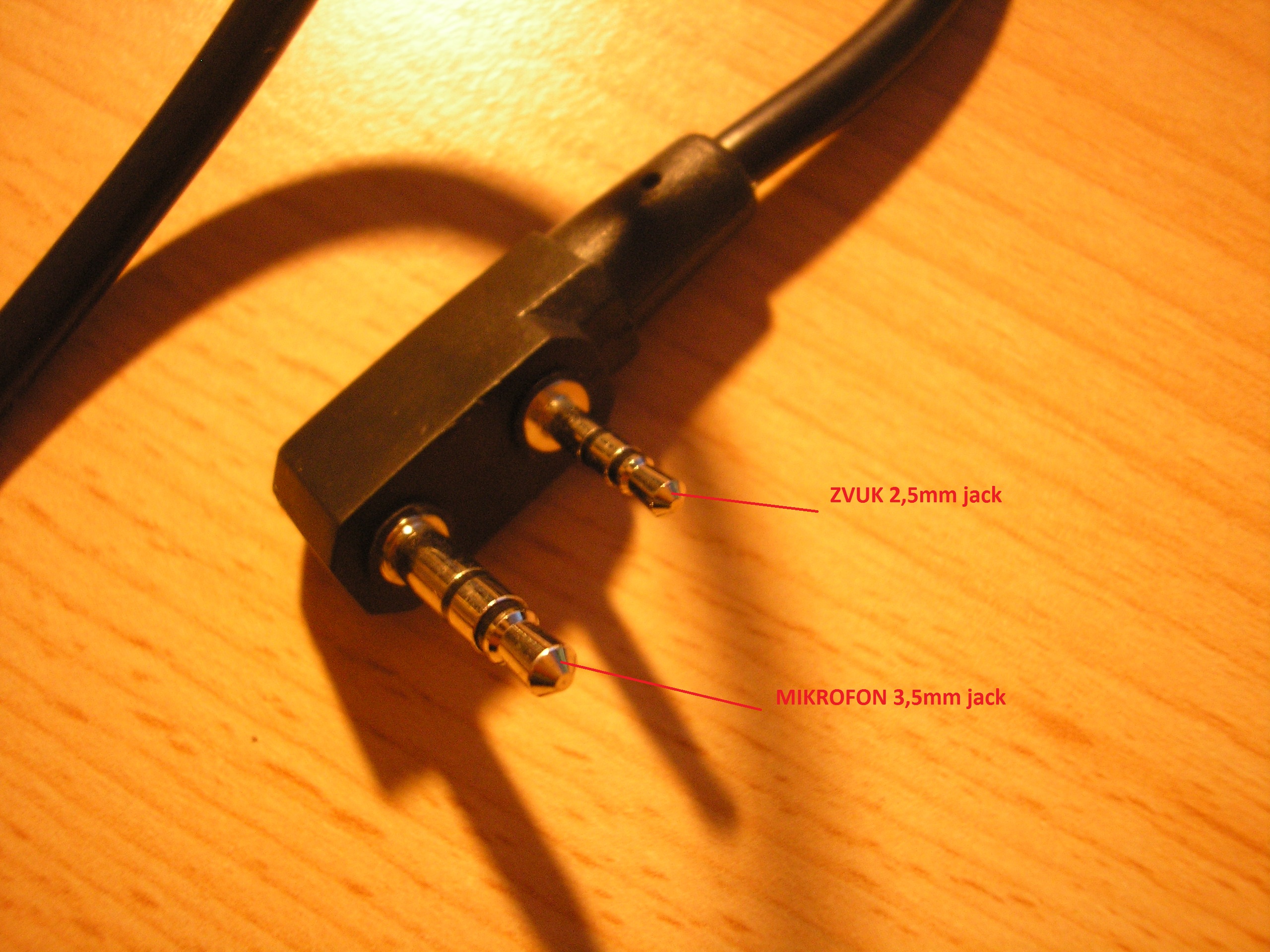 Zdravím, jak již název napovídá mám problém se svým headestem. koupil jsem si headset http://www.zamerovac.cz/takticky-headse ... g10ibp5i26 s tímto kabelem http://www.zamerovac.cz/spinac-u94-ptt- ... 49573.html , jenže jsem zjistil, že to má přehozené dráty. Ve vysílačce je pro příjem zvuku určen 3,5 mm jack a pro mikrofon 2,5 mm. Kdežto na kabelu je to obráceně. Rozebíral jsem to a vypadá to, že by stačilo pouze přepájet některé drátky, jenže já absolutně nemám zdání, který je který. Poradí mi někdo které prohodit??? Předem díky za rady a nápady :wink: