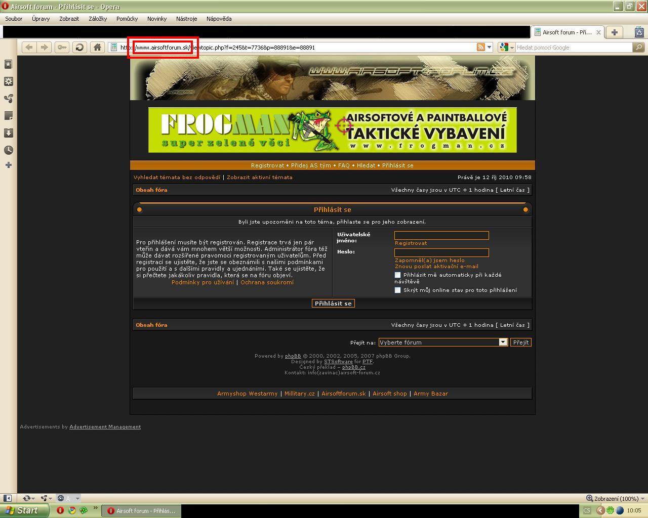 Zdravím, nevím, zda to s tím souvisí, ale poslední dobou se mi množí případy, kdy mi přijde email se sledovaným tématem, když kliknu na odkaz, tak se mi zobrazí přihlašovací okno (na tom by nebylo nic špatného, i když mám dané ,,trvale přihlášený"), ale problém je v tom, že místo odkazu http://www.airsoft-forum.cz se mi zobrazují jiné odkazy (viz příloha). Moje otázka tedy je, zda to nějak vadí, či ne? Děkuji za odpověď.
