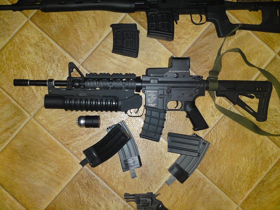puškohled už nemám a snipu prodávám, M4 teď bude postupně dostávat úplně jiný vzhled, doma mám ještě USP (prodávám) a berettu M9 a ty nemám nafocený