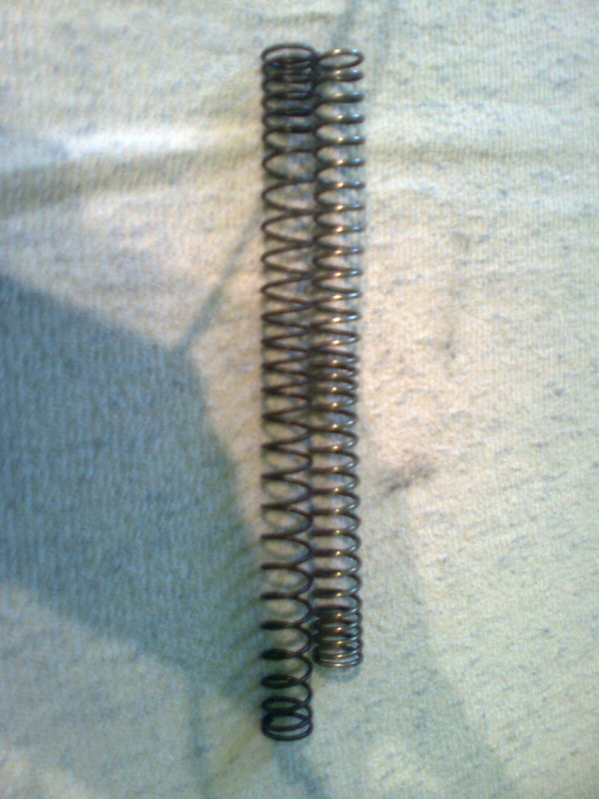 a ještě jedna věc: koupil jsem si pružinu Guarder 120, ve zbrani měla být nějaká 130 (říkal původní majitel) ale mě to ta zdá divné, ta větší nalevo je Guarderka: Příloha:
